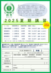 2025夏期講習パンフ朗豊(内部生早割) 2025/05/26 検索実行 最近の記事 5234.~成長~2026/02/03 5233.~”学び“との出会い~2026/02/02 5232.~コンパス スモールステップで~2026/01/31 5231.~教材 特性に合わせて~2026/01/30 5230.~時には息抜きも〜2026/01/29 カテゴリー 「ケースに学ぶ」(24)「指導のポイント」(52)ケースに学ぶ(299)ごあいさつ(1)コミュニケーション(13)ご連絡(1)その他(2)テーマの力・魅力(2)テーマの魅力(2)仕事・就労(2)受験・進学(135)受験に向けて(3)大学・大学生(1)季節(1)季節・時節(1)学習態勢(3)学習態勢を育む(1)学習環境(1)学習習慣(15)定期考査(2)家庭(1)就労(1)就職・就労(3)工夫・創造(4)工夫次第(22)指導のポイント(41)教室情報(1)新学期(3)検定試験(2)理念と姿勢(3)生きる(2)生きる力(8)生活(71)知るを楽しむ(8)表現(21)識者に学ぶ(2) バックナンバー 2026年 2月 1月 2025年 11月 10月 9月 7月 6月 5月 4月 3月 2月 1月 2024年 12月 10月 9月 8月 7月 6月 5月 4月 3月 1月 2023年 11月 9月 7月 6月 5月 4月 3月 2月 1月 2022年 12月 11月 10月 9月 8月 7月 6月 5月 4月 3月 2月 1月 2021年 12月 10月 8月 7月 6月 5月 4月 3月 2月 1月 2020年 12月 11月 9月 7月 6月 5月 4月 3月 2月 1月 2019年 12月 11月 10月 9月 8月 7月 6月 5月 4月 3月 2月 1月 2018年 12月 11月 10月 9月 7月 6月 5月 4月 2月 2017年 12月 11月 10月 9月 8月 7月