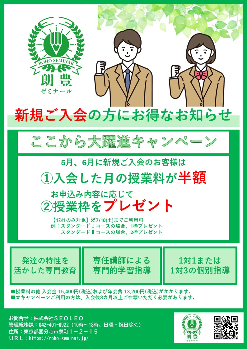 朗豊ゼミナールでは新規で5月・6月にご入会の方にお得なキャンペーンを行います。